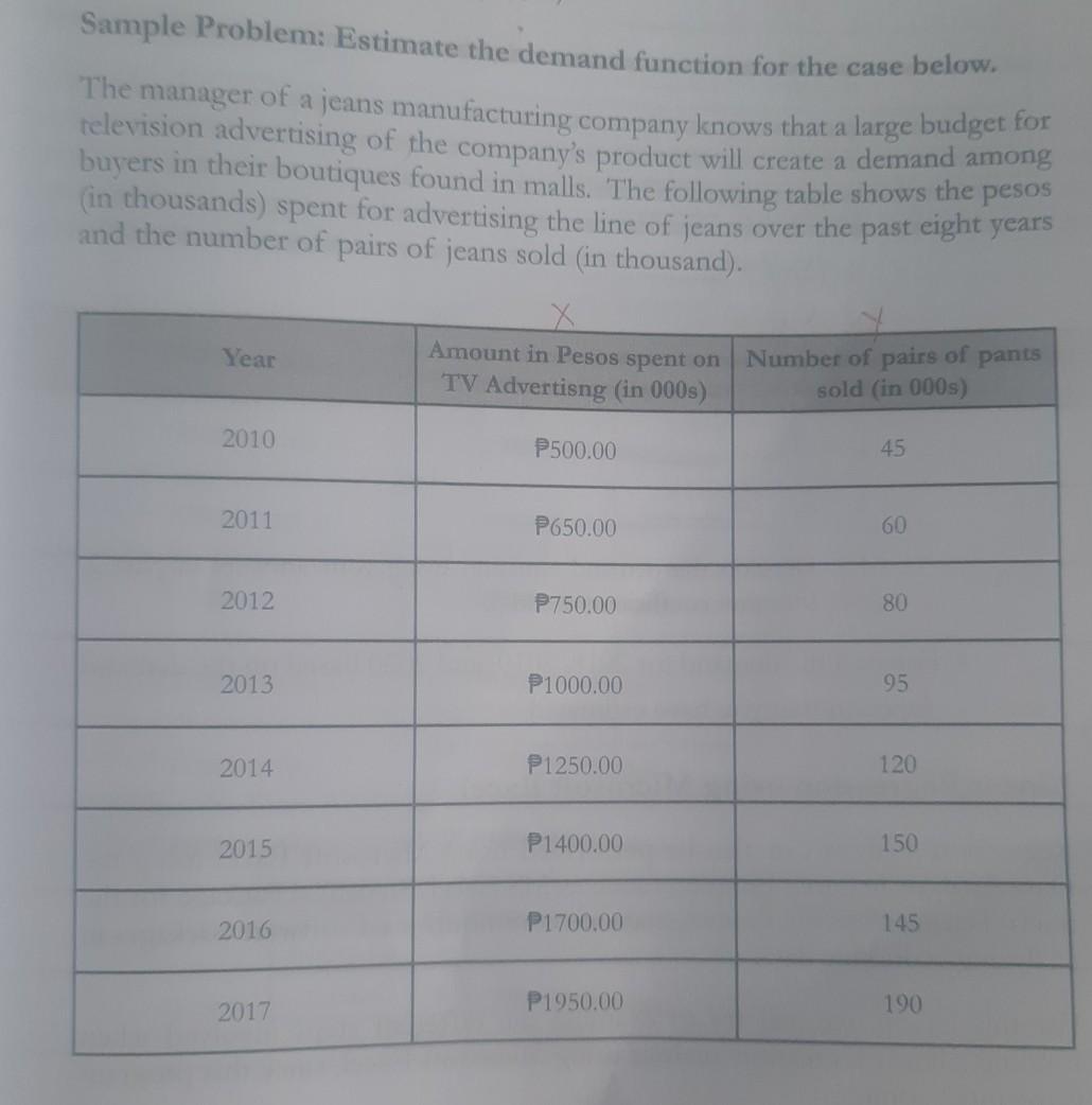 Solved Sample Problem Estimate the demand function for the